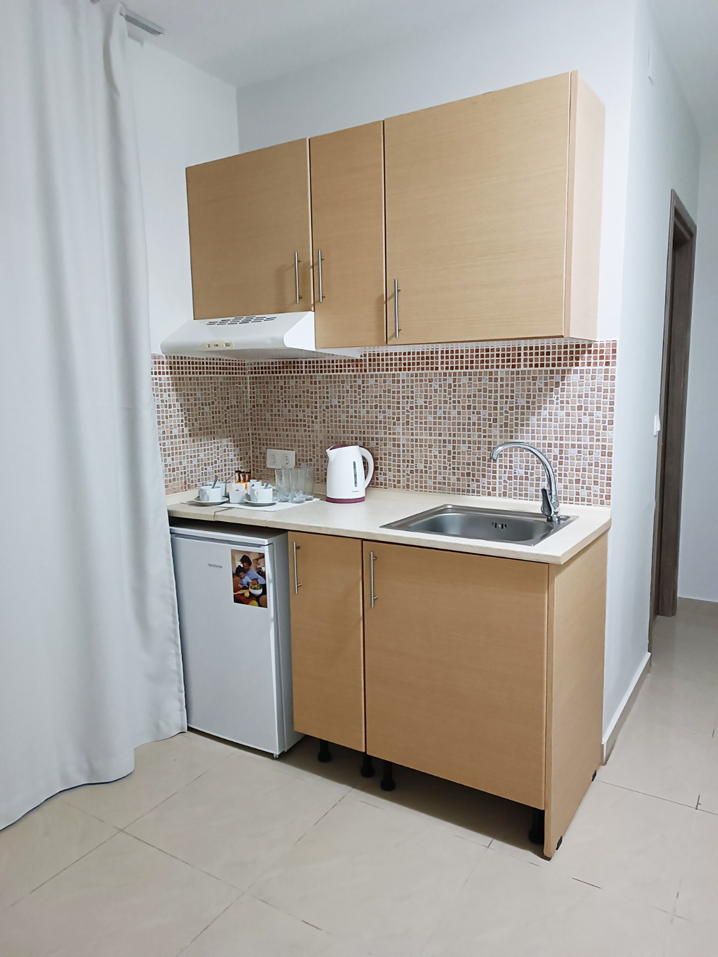 Elhelyezés: 2 ágyas, maximum 4 fő elhelyezésére alkalmas, szépen berendezett, pótágyazható szobákban, melyek mindegyike légkondicionálóval, zuhanyzó/WC-vel, mini konyhával (a konyha főzésre nem, csak kávé és egyszerűbb ételek elkészítésére alkalmas), ingyenes WiFi-vel, TV-vel, hűtőszekrénnyel, vízforralóval felszerelt és balkonnal rendelkezik. A légkondicionáló használata 7 EUR/szoba/nap áron, a helyszínen befizethető.